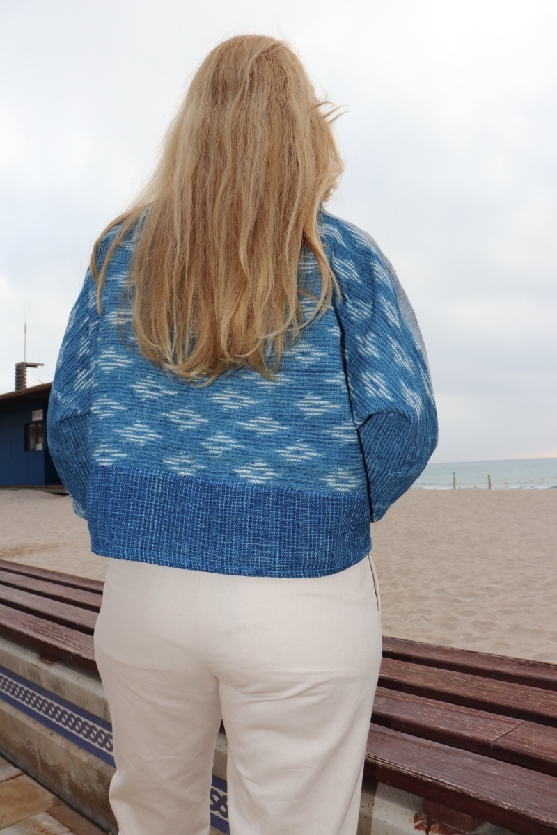 It is a shirt not only for free time, but to be used at any time and any activity. You will stand out thanks to its blue design. The cotton is very soft and smooth, becoming fluffier after washing, due to the hand-woven thread. It is completely woven by the hands of our craftswomen, with an authentic technique from the north of Thailand, using an antique loom.
