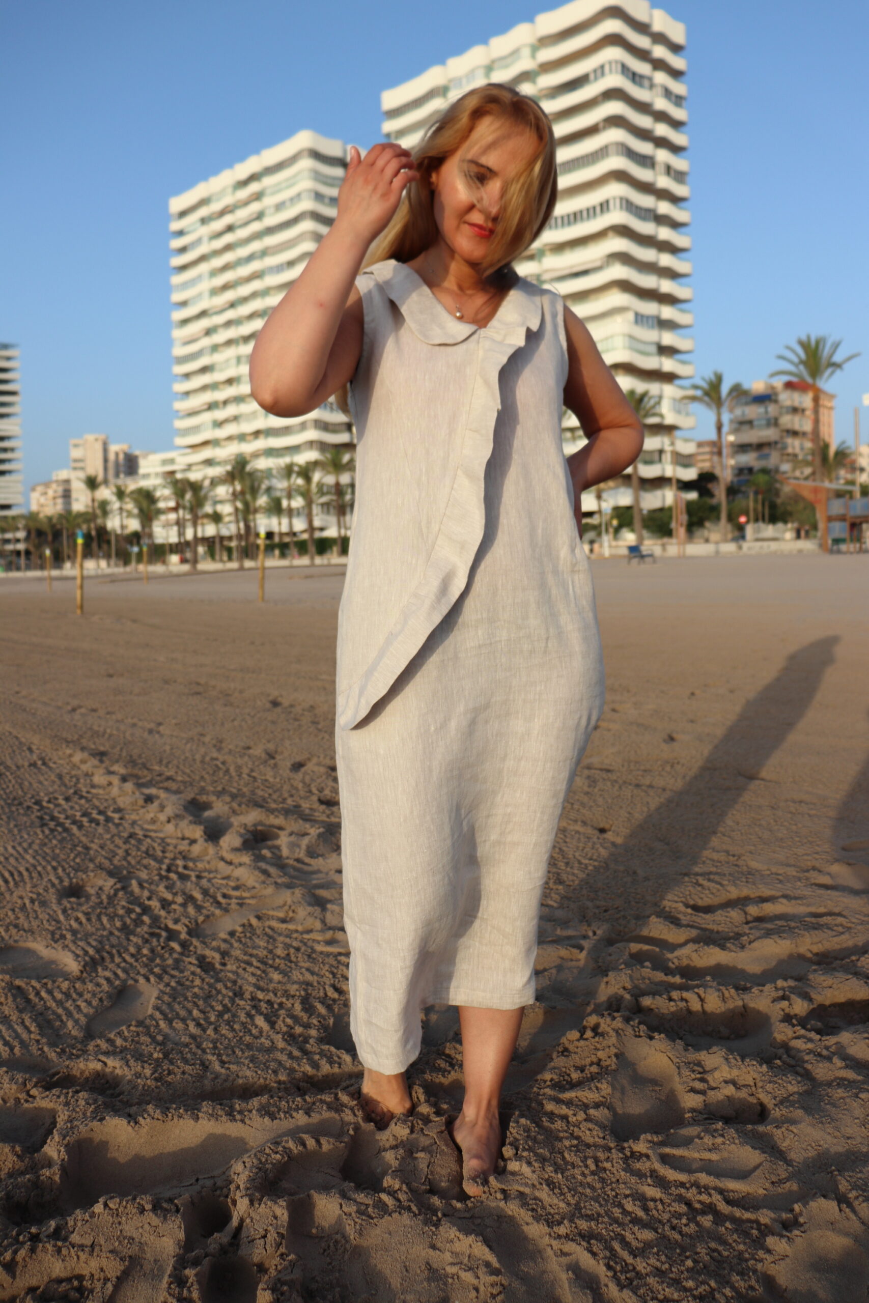 This dress is YOUR SECOND SKIN and is part of sustainable fashion. By buying and wearing it you will be part of the group that supports sustainable fashion, together with Mihido. The community of workers who have made this linen dress from the linen plant to your wardrobe will be very happy that you are an active part of their life.
