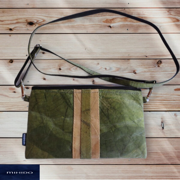 Este accesorio indispensable en nuestra vida diaria está hecho de cuero ecológico. El “cuero” de hojas orgánicas no es cuero real: es un material en capas hecho de hojas de teca recolectadas de forma sostenible, forrado con tela y sellado para preservar la belleza de los diseños de la naturaleza.